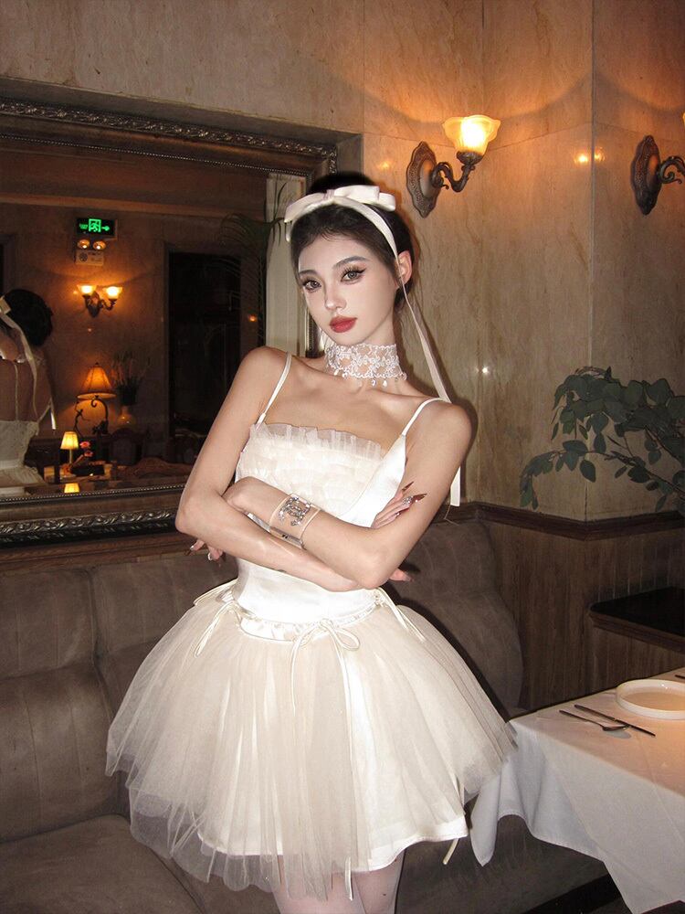 妖精のようなサテンとチュールの組み合わせが