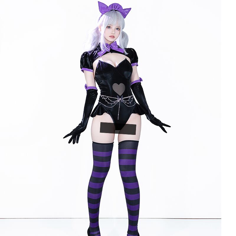 トップス、ジャンプスーツ、蝶ネクタイ、カチューシャ、アームカバー、ウエストチェーン、ソックス、透明ショルダーストラップ