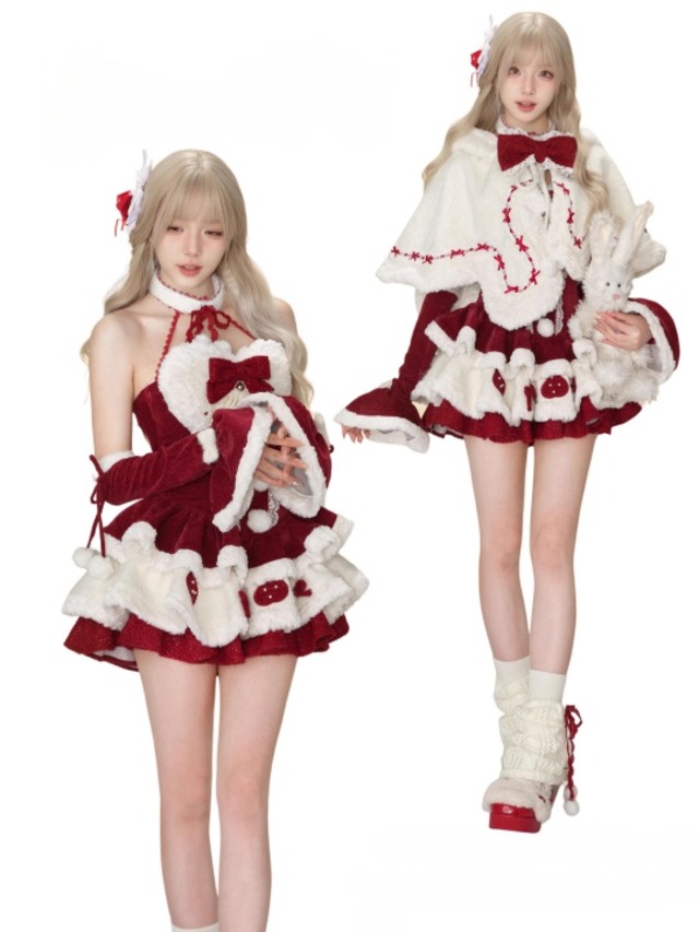 今年のクリスマスは誰よりもラブリーに♡ うさ耳付きのケープをセットにして お届けします! 【セット内容】 ワンピース、ケープ、アームウォーマー ※ソックス、髪飾りは別売りです。 【目安体重】 XS 37.5-42.5kg S 42.5-47.5kg M 47.5-52.5kg L 52.5-57.5kg XL 57.5-65kg ※サイトの下部にあるAttentionをよく読んでからのご購入をお願いいたします。
