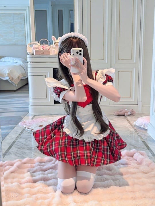 ウィンターチェックリボンメイドコスプレ【No.3188】/かわいいレディースコスプレ衣装