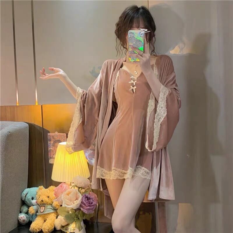 ガウンとセットのレディリボンルームウェア