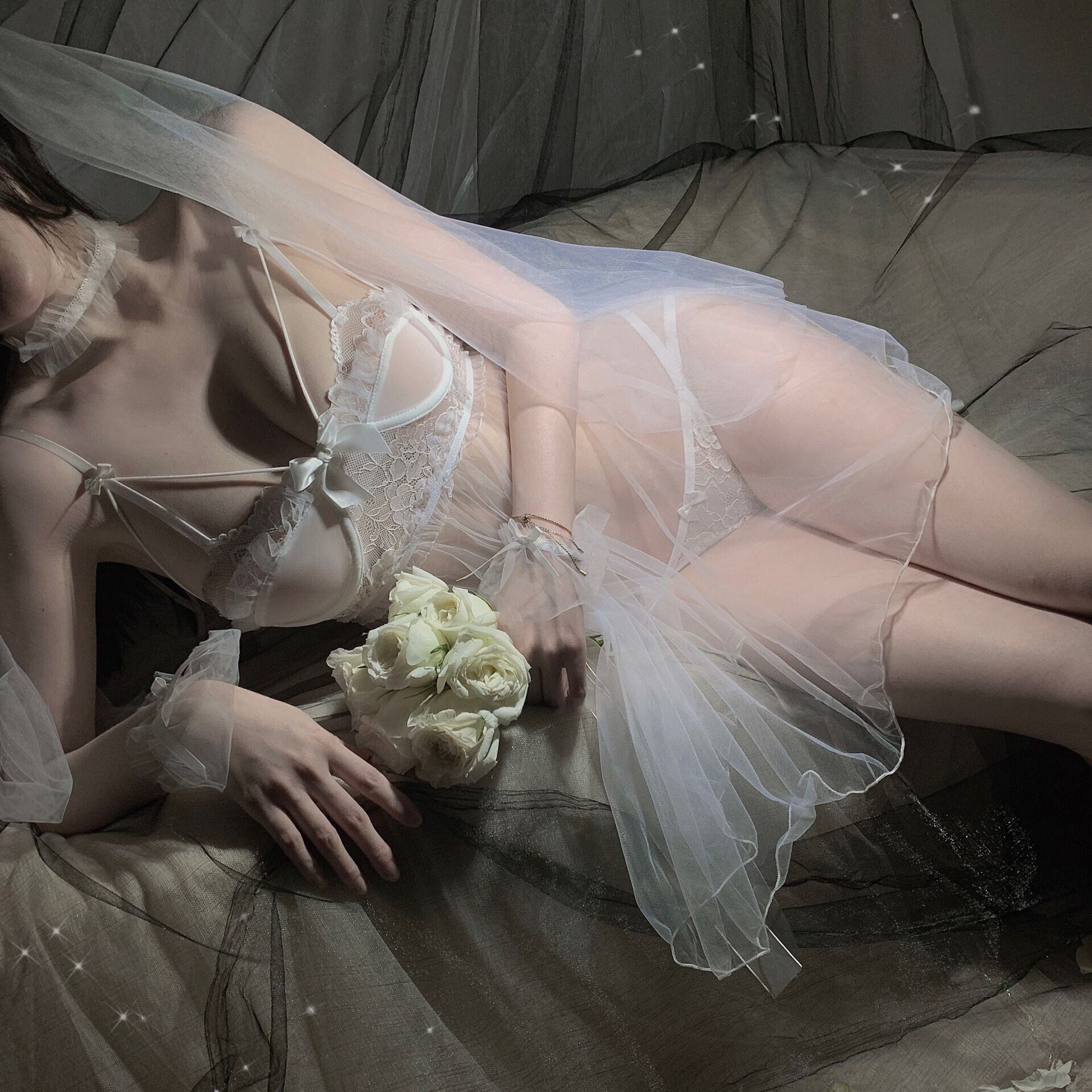 ベール×チュールが可愛らく、セクシーな印象に…♡
